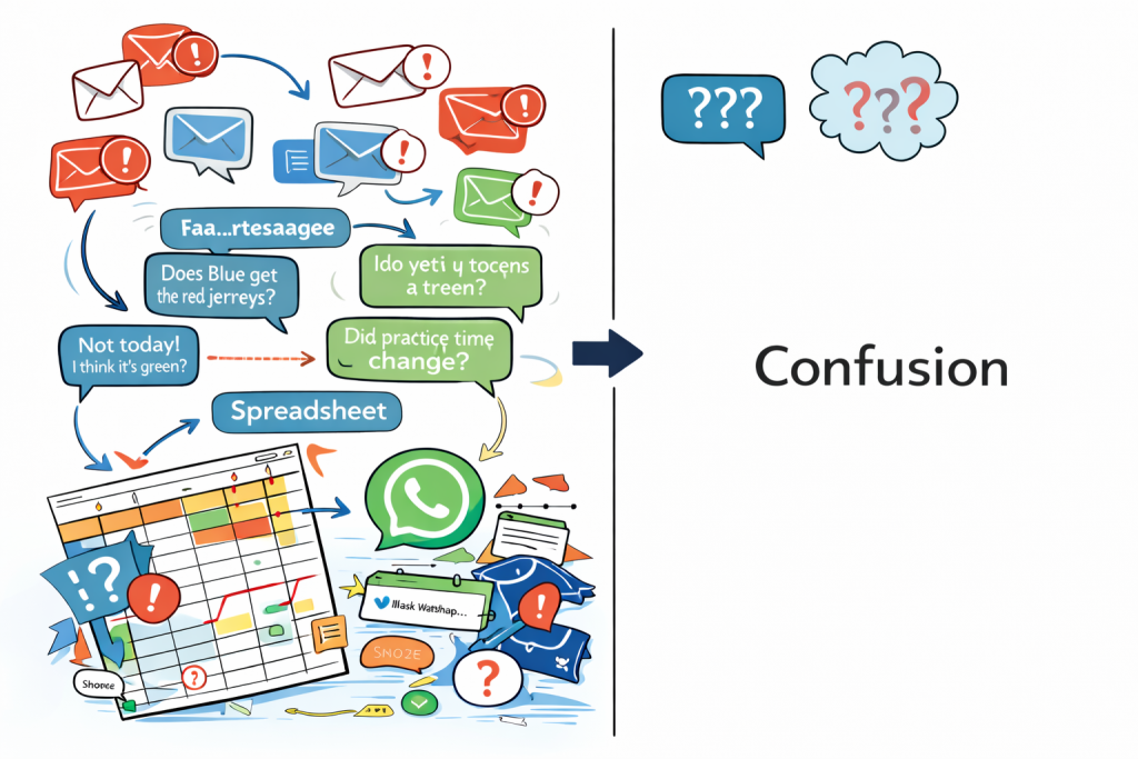 What should be a straightforward process, collecting sizes and placing an order, can quickly spiral into a logistical nightmare. Parents submit sizes late. Players change numbers. Some athletes forget to respond at all. Meanwhile, the season schedule keeps moving forward, and the pressure to get uniforms ready keeps building.
