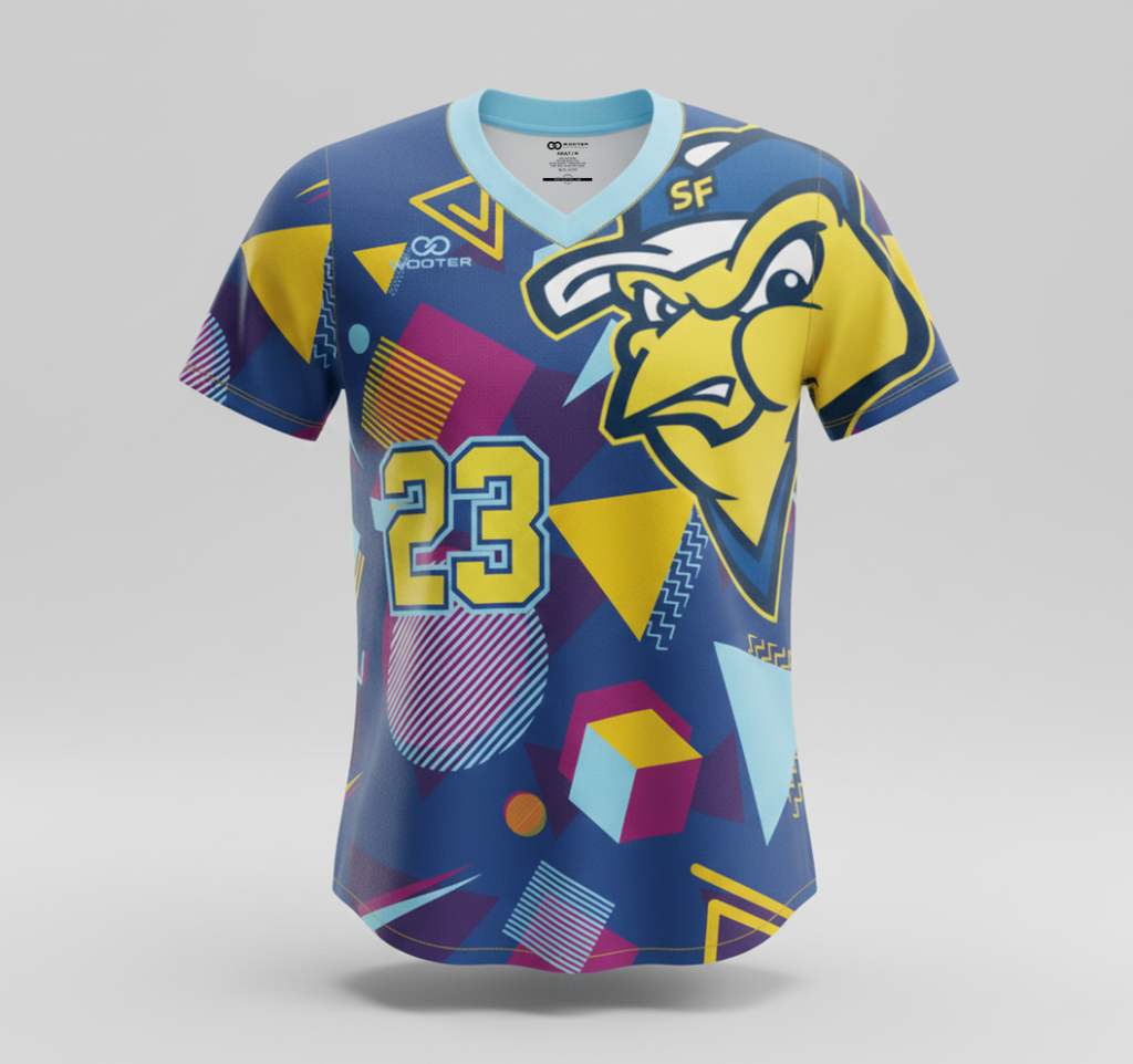 Jared showcased his versatility with two distinct hits. First, a short-sleeved shooting shirt for Alienware that reflects the precision of elite gaming. Second, a V-neck baseball jersey that leans heavily into 80s-themed elements—bold geometric shapes and retro color palettes that prove the “Old School” is still the best school.