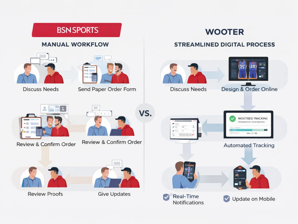 However, for the growing number of teams that value speed, clean digital workflows, and automation, Wooter stands out as the more efficient choice. Its software-first approach, faster turnaround, streamlined ordering, and better digital workflows align with how modern athletic programs operate.