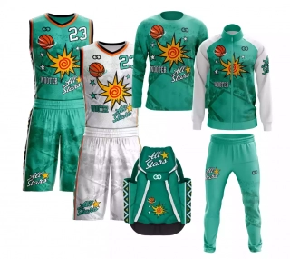 Our Basketball MVP Package features both a home and away set, a dry fit shooting shirt, warmup set (Warmup jacket & warmup track pants) along with an elite basketball backpack. Customize every inch of our products!