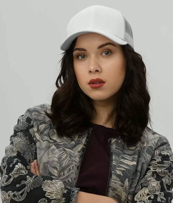 This six-panel trucker cap with a mesh back will be a comfy and classic choice for a perfect day in the sun. • 60% cotton, 40% polyester • Mid-profile cap with a low-profile embroidery area • Structured, six-panel cap • 3.5″ crown (8.9 cm) • Hard buckram front panels • Mesh back • Permacurv® visor, matching undervisor • Plastic adjustable closure • Head circumference: 21⅝″–23⅝″ (54.9 cm–60 cm) • Blank product sourced from Vietnam or Bangladesh