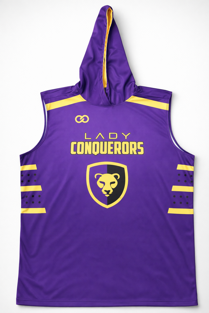 Custom Sleeveless Hoodie Shooting Shirts are built for teams that want more than a basic warm-up top. The sleeveless cut helps players move freely through shooting drills, layup lines, and active pre-game routines, while the hood adds a stronger teamwear look for arrivals, sideline wear, practice, and travel. It gives your roster a more polished appearance without the heavier feel of a traditional full-sleeve hoodie.